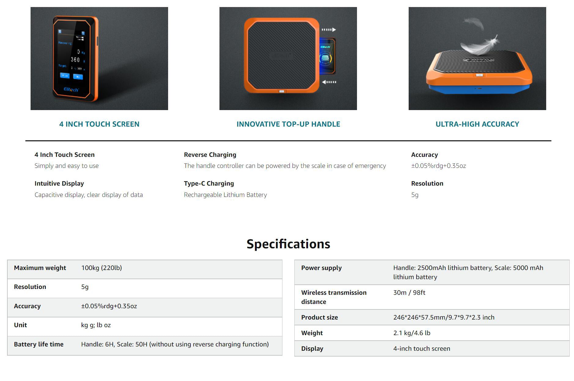 Elitech SRL-100 Intelligent HVAC Refrigerant Scale Lightweight Ultra Thin Maximum weight: 220lb (100kg)