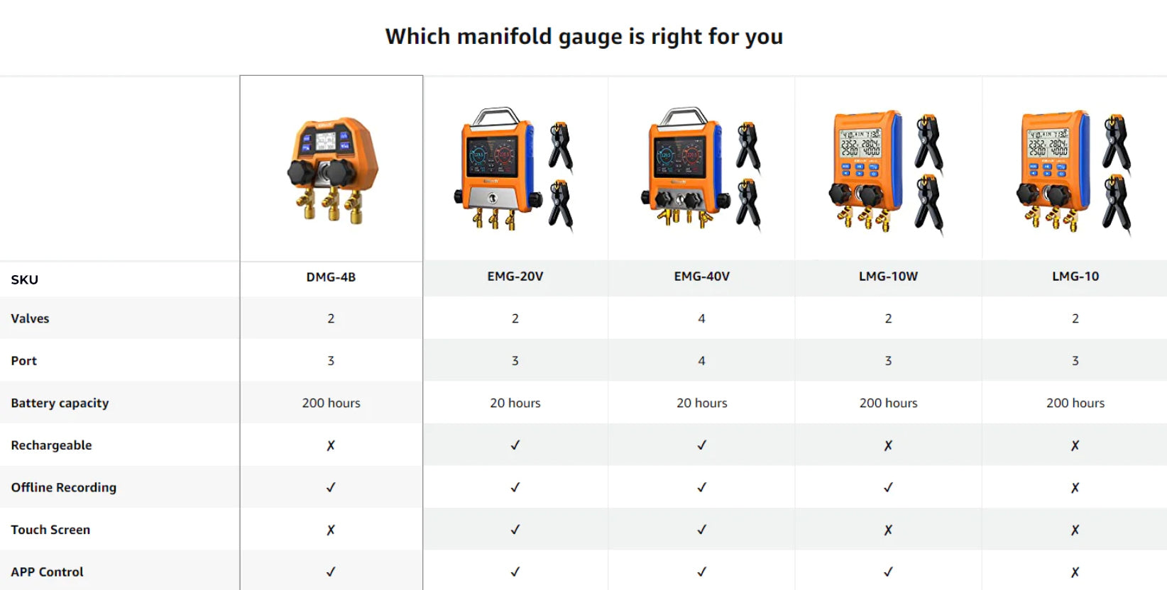 Elitech HVAC Digital Manifold Gauge App Control AC Gauges, DMG-4B