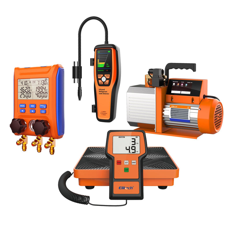 Elitech LMC-210A Programmable HVAC Refrigeration Charging Scale is designed to weigh refrigerant containers in addition to charging directly into the system or recover from the system. The HVAC scale features a measuring weight capacity of 330 lbs (150kg), remote communication between scale body and Elitech Scale App or handhold controller, tough and durable platform, sealed LCD and touch-pad, long-lasting circuitry, switchable measuring units, and more.