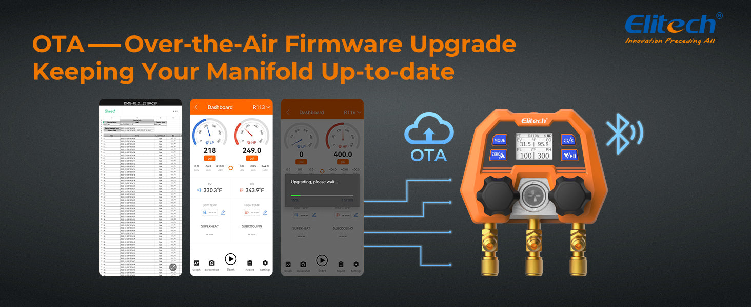 Elitech HVAC Digital Manifold Gauge App Control AC Gauges, DMG-4B