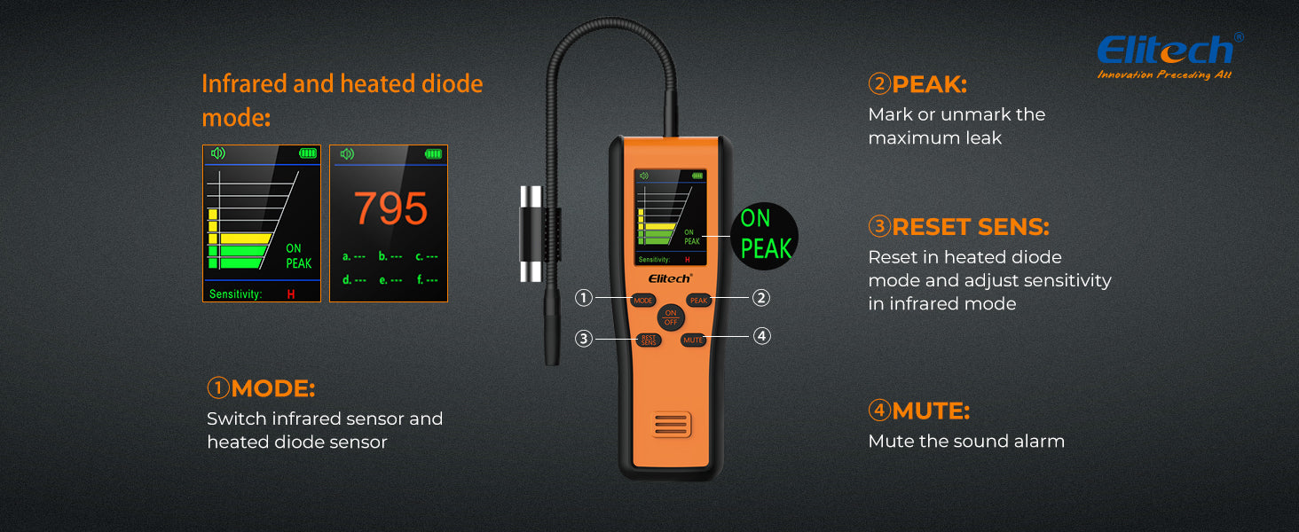 Elitech IR-200 Infrared & Heated Diode Refrigerant HVAC Leak Detector for Air Conditioner and Automotive Repair