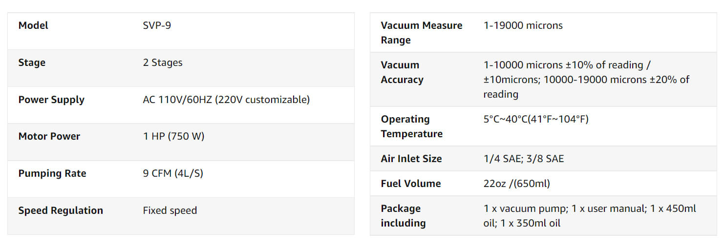 Elitech SVP-9 Intelligent 1HP Vacuum Pump 9 CFM 2 Stage HVAC Refrigerant Recharging, Touch Screen, Data Logging and Storage via App