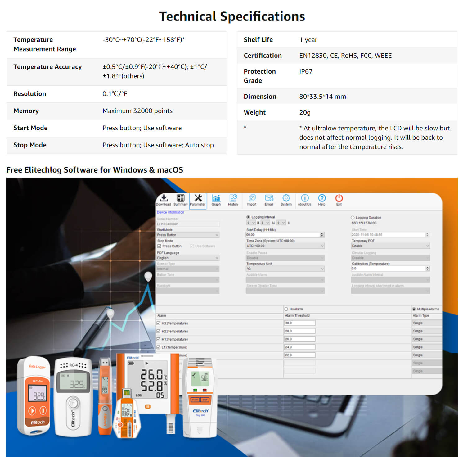 Noter: Pour la plupart des produits d'Elitech que vous achetez et qui incluent un certificat de vérification ISO, nous devons envoyer le produit à une agence ISO tierce pour vérification, ce qui prolongera le processus logistique global de 1 à 3 semaines. Si vous avez des exigences strictes concernant le délai de livraison, veuillez faire attention à acheter des produits qui incluent des certificats de vérification ISO. Nous aimerions rappeler aux clients qui ont un besoin urgent de nos produits que tous nos enregistreurs sont également livrés avec un certificat d'étalonnage de l'usine.