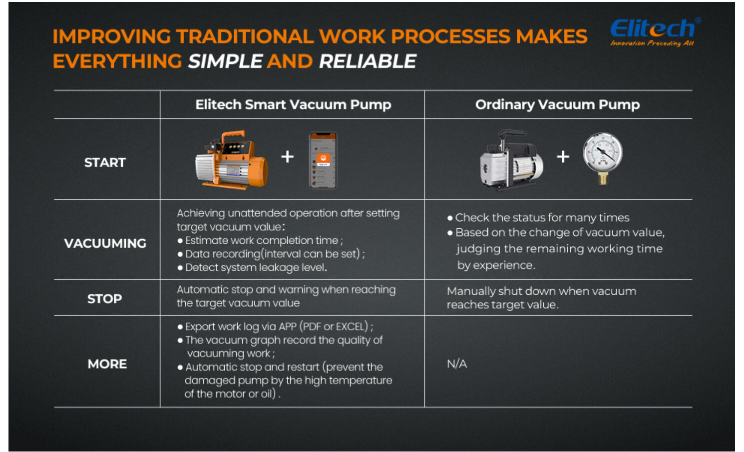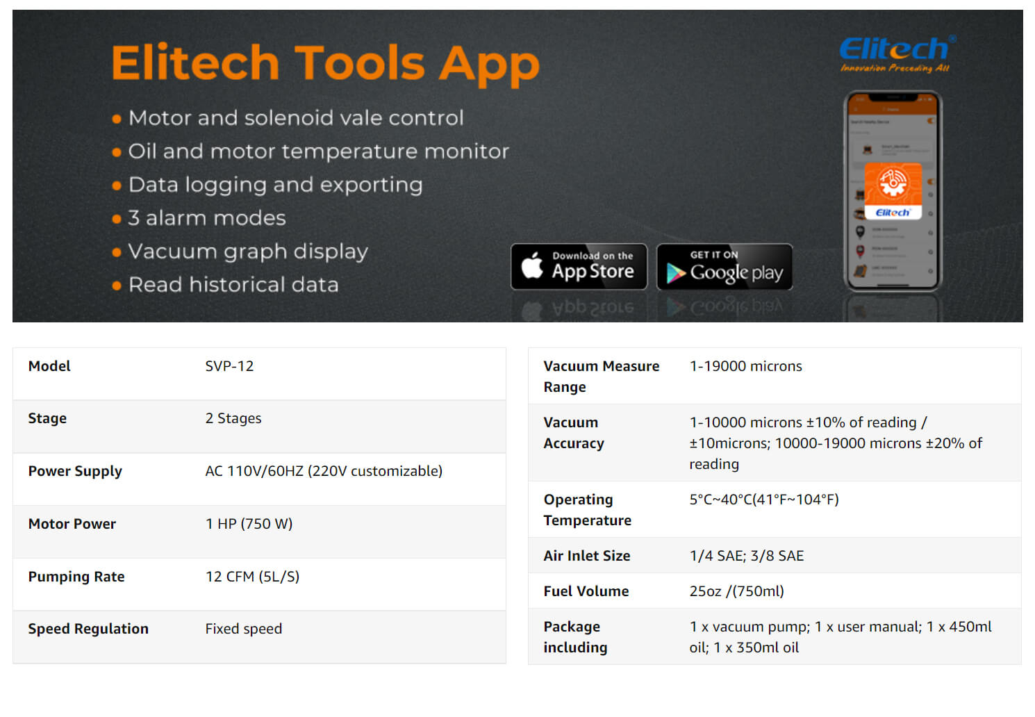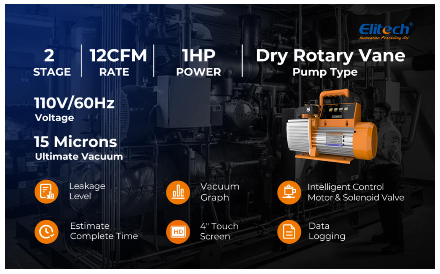 Elitech SVP-12 Intelligent HVAC 1HP Vacuum Pump 12 CFM 2 Stage with Touch Screen - Elitech Technology, Inc.
