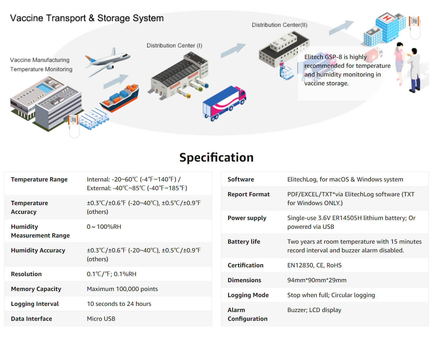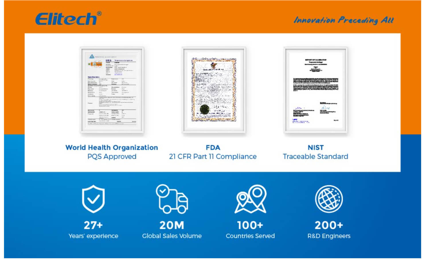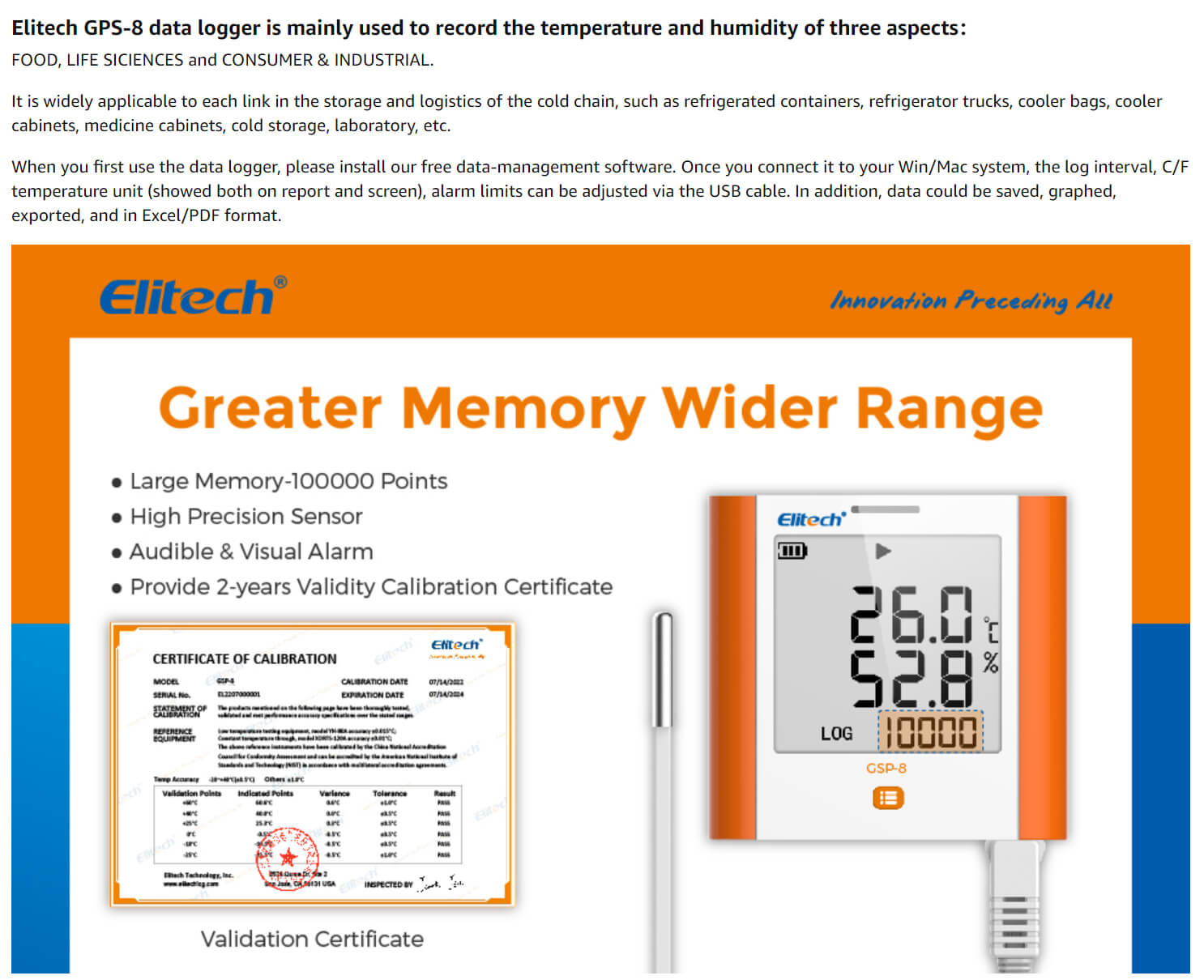 Noter: Pour la plupart des produits d'Elitech que vous achetez et qui incluent un certificat de vérification ISO, nous devons envoyer le produit à une agence ISO tierce pour vérification, ce qui prolongera le processus logistique global de 1 à 3 semaines. Si vous avez des exigences strictes concernant le délai de livraison, veuillez faire attention à acheter des produits qui incluent des certificats de vérification ISO. Nous aimerions rappeler aux clients qui ont un besoin urgent de nos produits que tous nos enregistreurs sont également livrés avec un certificat d'étalonnage de l'usine.