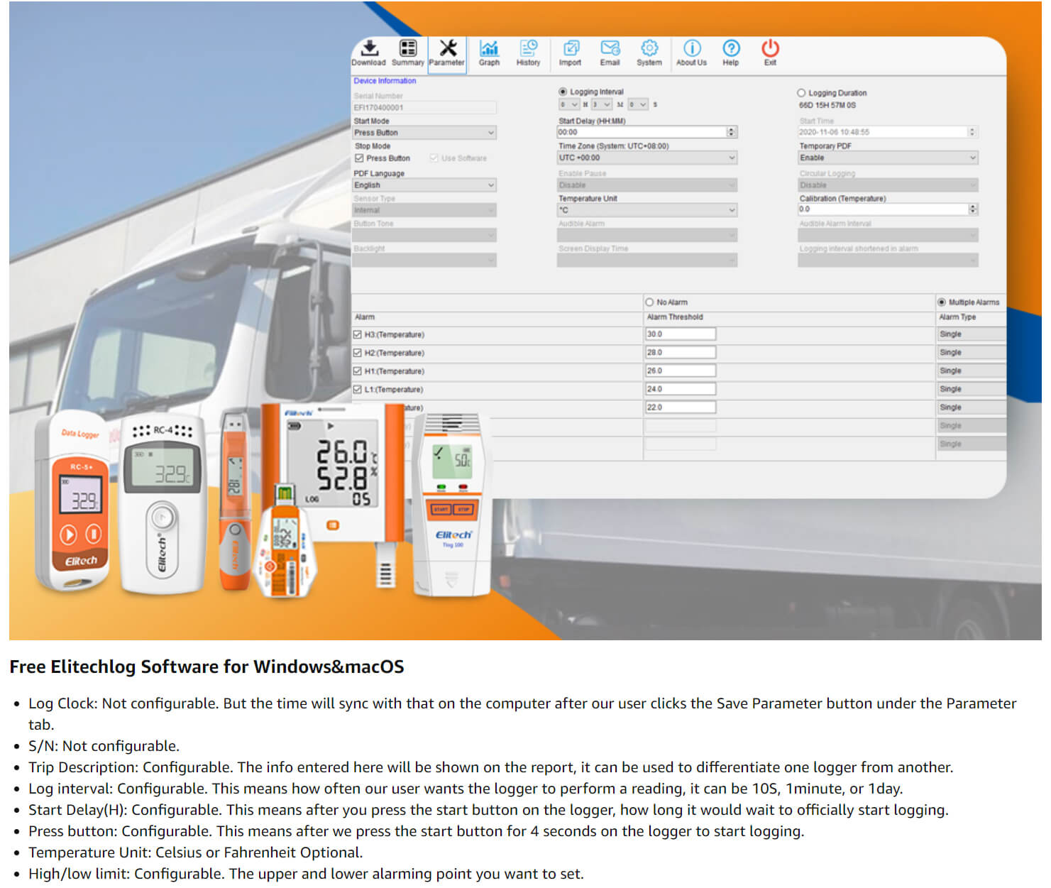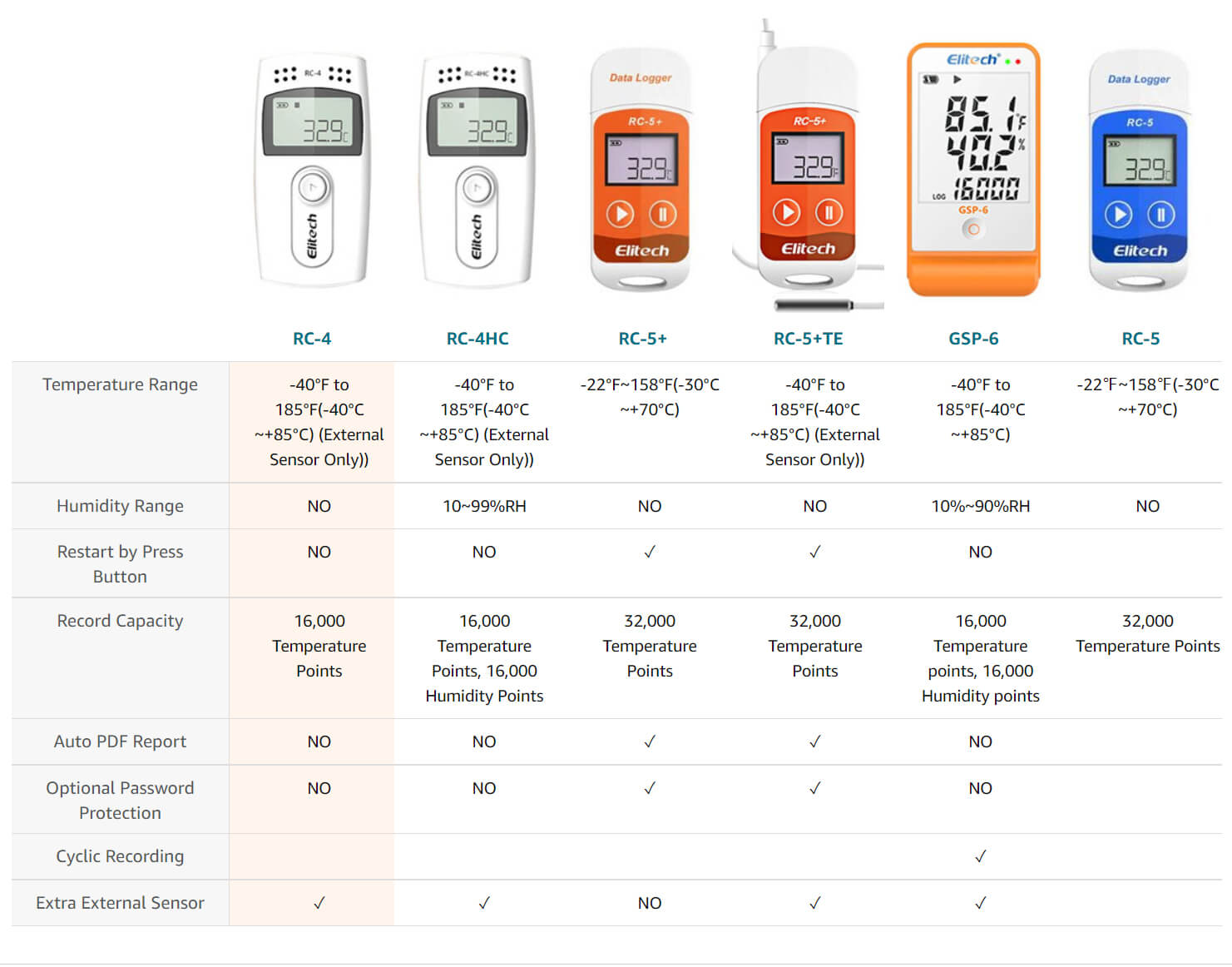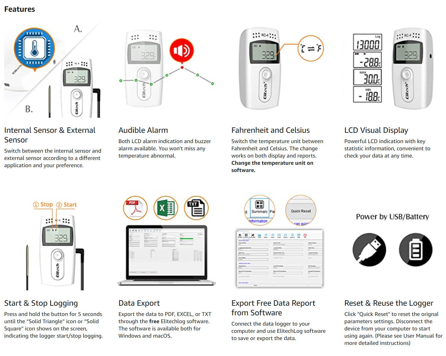 Enregistreur de données de température Elitech RC-4 avec alarme audio de capteur de température externe
